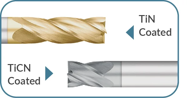 • TiN coating provides improved performance in a wide variety of materials, and generally used in applications with lower cutting speeds