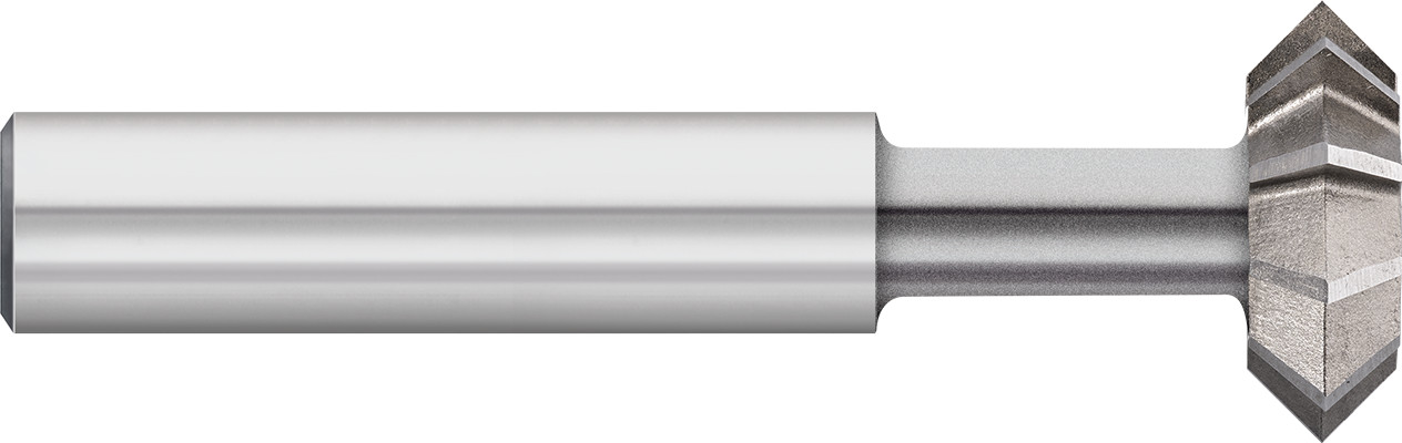• Double angle cutter geometry produces accurate features for slotting and undercutting applications
